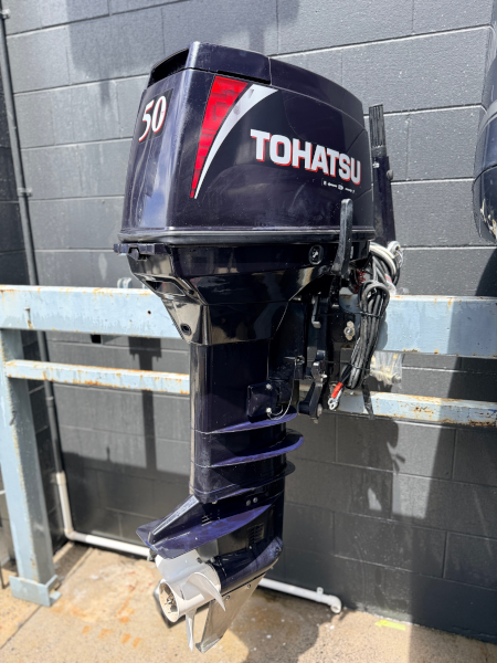 U020981 2017 50 TOHATSU 2 STROKE - Japanese manufactured - Triple Carb 3 cylinder - Oil injected - Electric / Manual start - PTT Fully checked over runs like a dream.